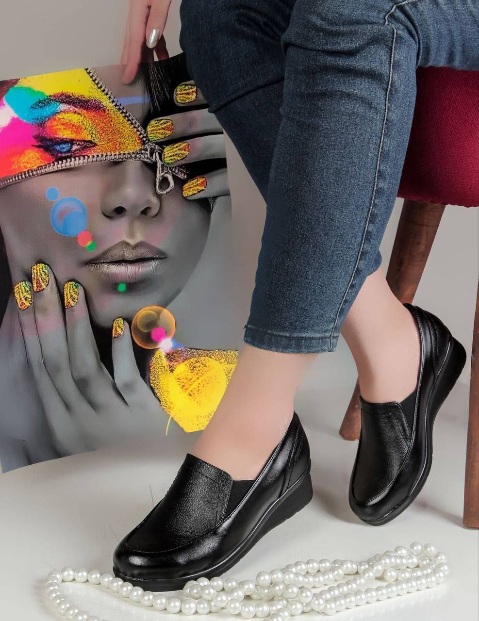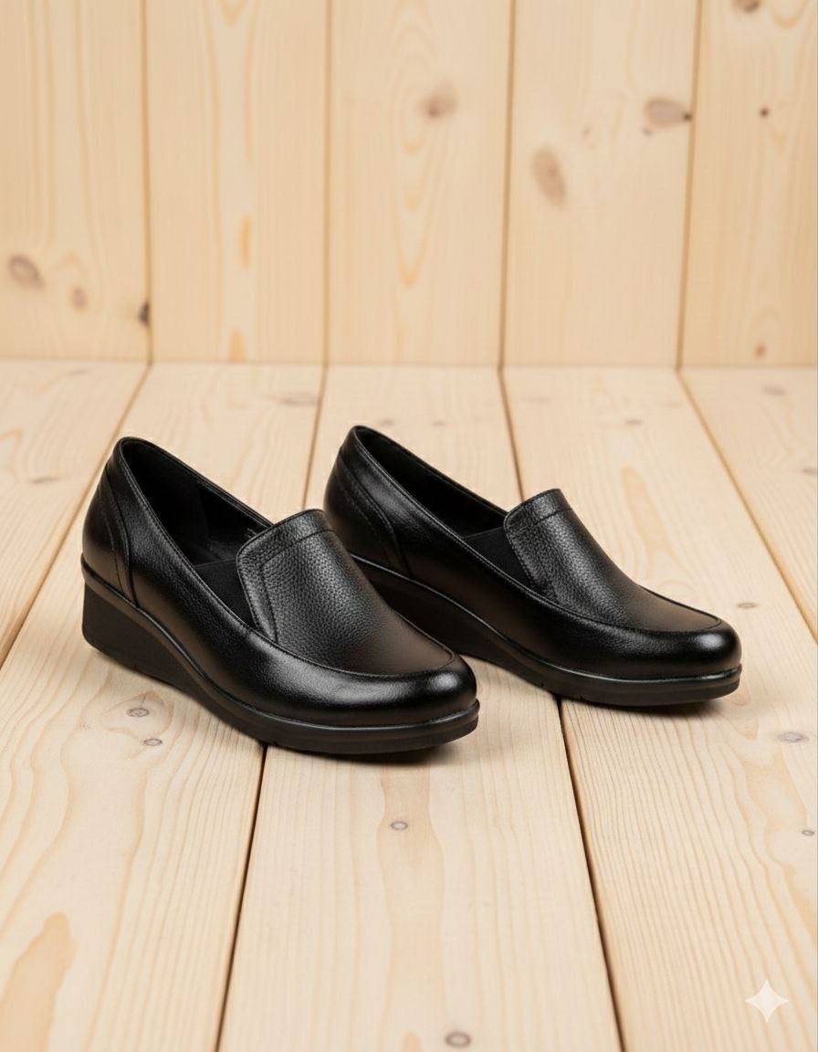 کفش زنانه اداری روزمره طبی درجه ۱ رویه کار چرم زیر پی یو درجه۱ کفی طبی پفک دار سایزبندی۳۷تا۴۰ کار باغ با ضمانت